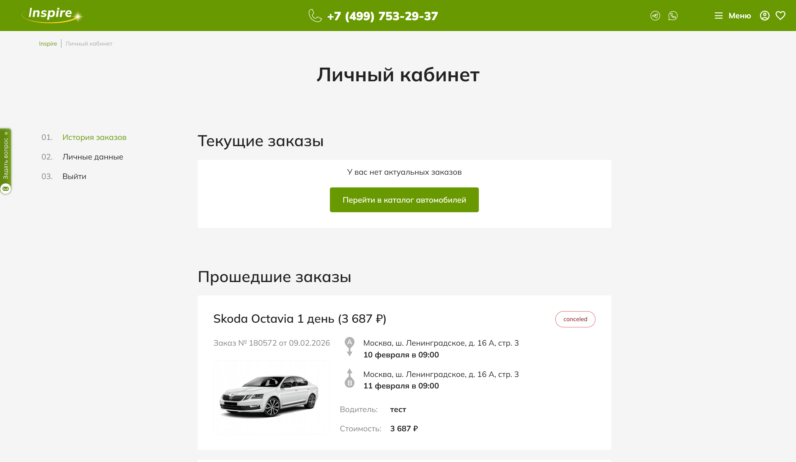 Если заказ давно подтверждён, а в кабинете его всё ещё нет — напишите нам на rent@inspirerent.ru с номером заказа.